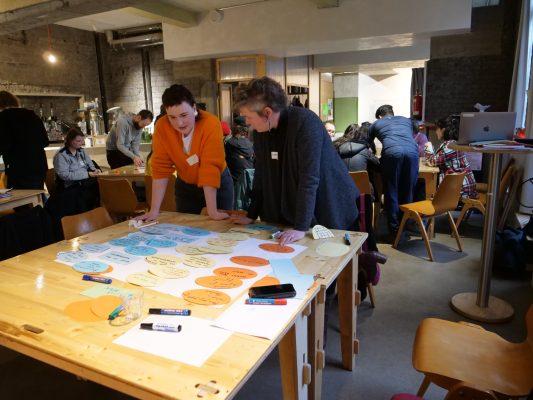„Stadt – Raum – Natur“, „Politik – Geschichte – Diskussion“, „Gemeinsam – Aktiv – Kreativ“, „Nachbarschaft – Vielfalt – Inklusion“, „Kinder – Jugend – Alter“ waren die Themenfelder, zu denen sich die rund 30 Interessierten austauschten. Welche Probleme gilt es anzugehen, welche Ideen und Wünsche um dies zu tun? Und wie können diese Wünsche und Ideen konkret in unserem Quartier umgesetzt werden? Knapp 3 Stunden lang wurde heiß diskutiert und gebrainstormt, bis die Köpfe rauchten. Am Ende gab es mehr Ergebnisse als wir sortieren konnten und eine leckere vegane Gulaschsuppe.