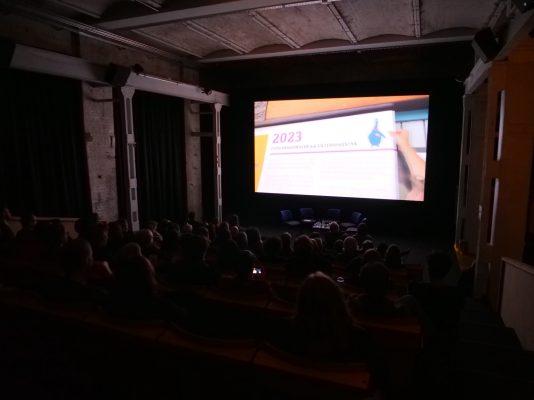 Nun fanden wir alle ein vorerst letztes Mal zusammen: im Sinema Transtopia in Berlin. Nicht nur wir waren dort, sondern auch Verantwortliche des durchführenden Bundesverband Soziokultur, Vertreter*innen der fördernden Bundesministerien – und Claudia Roth per Film-Botschaft.