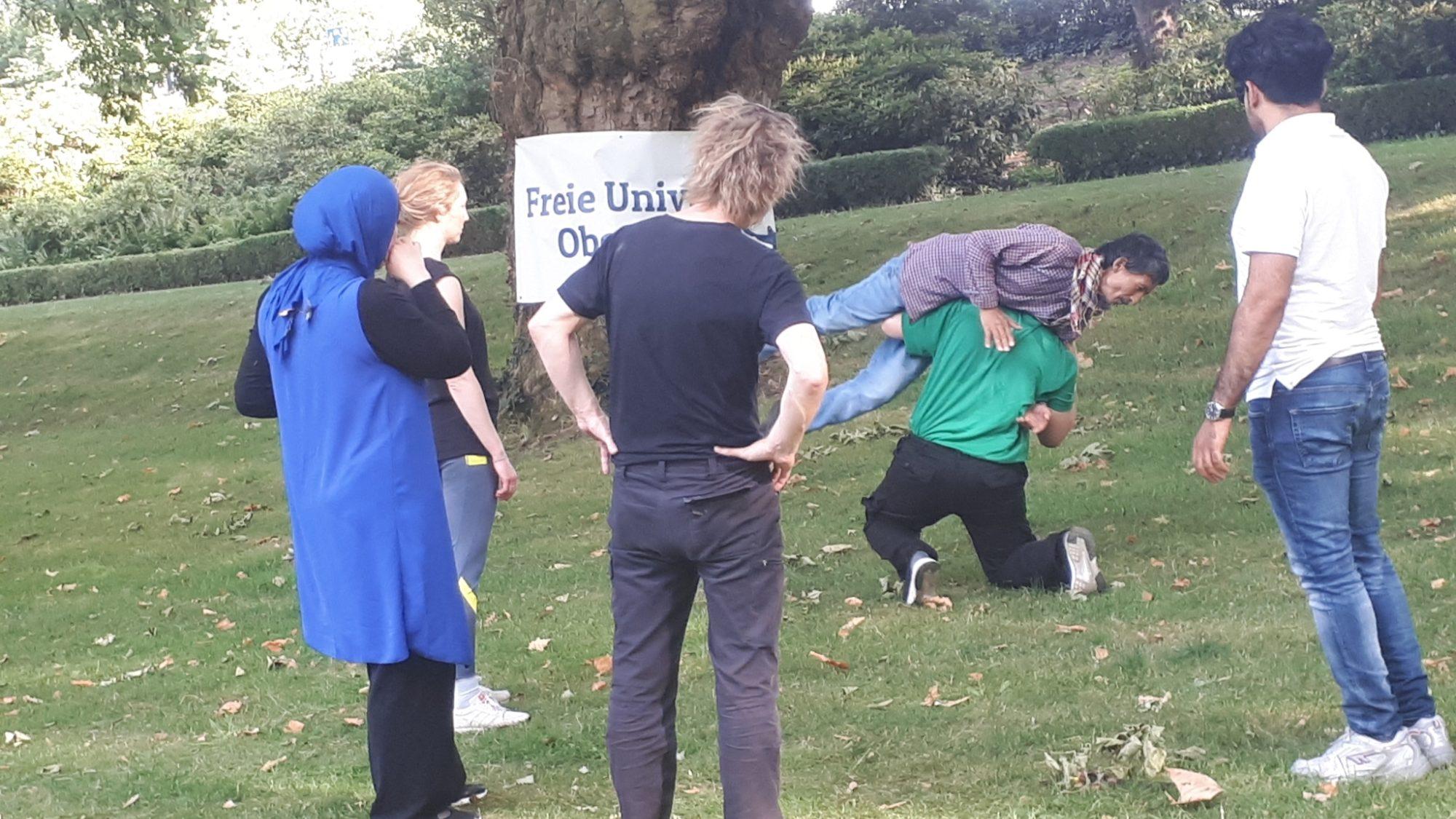 Der vierstündige Workshop bietet eine grundlegende Einführung in das Thema Selbstschutz. Im Fokus stehen das Erkennen, Entschärfen und Entkommen aus potenziell gewalttätigen Situationen. Statt auf spezielle Techniken zu setzen, befassen wir uns mit Gewalt als Teil menschlichen Verhaltens. Der Workshop behandelt zwar auch die physische Auseinandersetzung, aber der Schwerpunkt liegt auf der sozialen Interaktion.