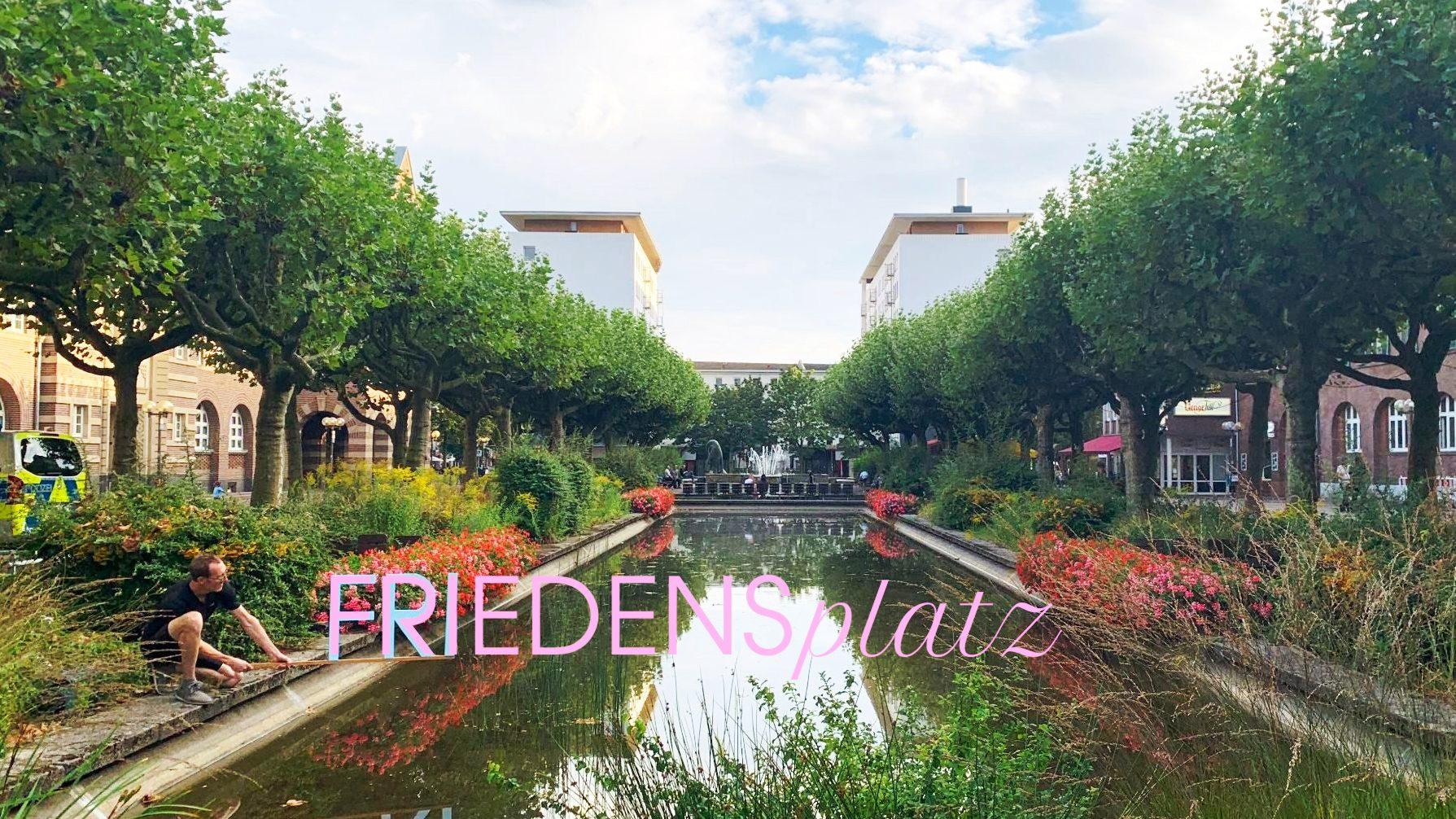 Zusätzlich wird es eine visuelle Installation geben: Den Schriftzug FRIEDENsplatz im Wasserbecken. Das Bild oben besteht z.T. bereits aus den realen Buchstaben.